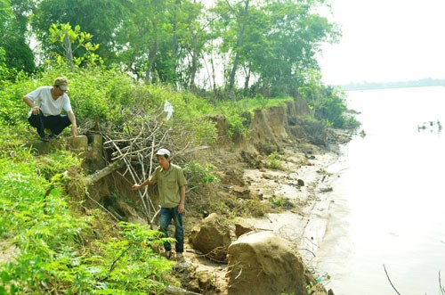 Sạt lở bờ sông đã làm ảnh hưởng nghiêm trọng đến đời sống người dân thôn Trung Yên (xã Triệu Độ, H.Triệu Phong, Quảng Trị) - Ảnh: Nguyễn Phúc