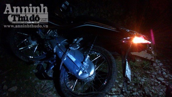 Tại hiện trường chiếc xe máy của nạn nhân bị đoàn tàu hỏa đâm vỡ nát, văng ra khỏi đường ray.
