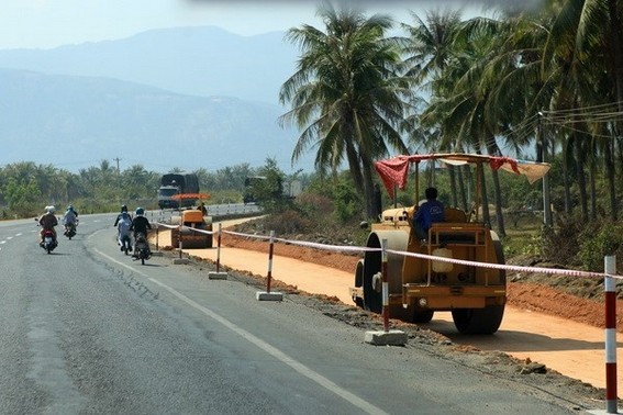 Thi công Dự án cải tạo, mở rộng Quốc lộ 1. (Ảnh: Ngọc Hà/TTXVN)