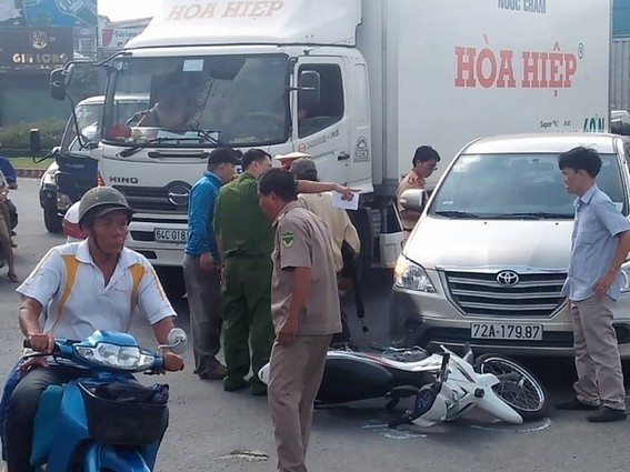 Sáng 13-9, một người đàn ông chạy xe máy biển số Đồng Tháp trên đường Kinh Dương Vương hướng từ Bến xe Miền Tây ra quốc lộ 1. Khi vào khu vực vòng xoay An Lạc, quận Bình Tân (TP.HCM) thì xảy ra va chạm với ô tô 7 chỗ đang ôm cua theo vòng xoay.