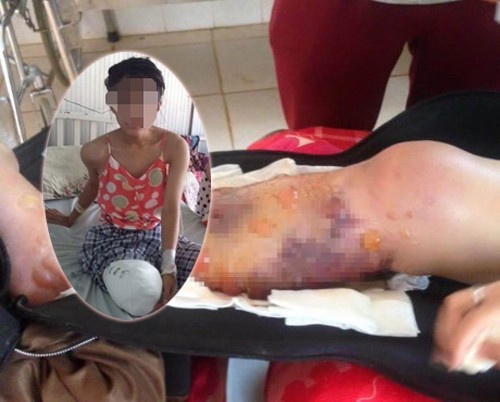 Tới sáng 8/3, các bác sĩ mới đồng ý tháo bột cho V. Thấy chân V. xuất hiện nhiều bọng nước, sưng vù, gia đình tiếp tục đề nghị được chuyển viện nhưng các bác sĩ bảo bệnh nhẹ, không đồng ý cho chuyển.