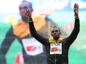 Siêu sao điền kinh Usain Bolt đã lần thứ hai lập “hat-trick” huy chương vàng tại giải vô địch điền kinh thế giới, khi cùng các đồng đội người Jamaica về nhất ở cự li 4x100m trong ngày thi đấu cuối cùng của đại hội.