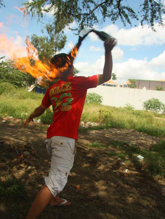 "Bom xăng" bây giờ không còn là trò mới lạ của teen Việt nữa (Ảnh từ clip)