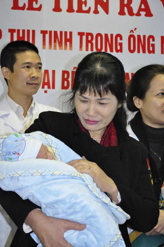 Bà Lưu Thị Hồng - Vụ trưởng Vụ Bà mẹ trẻ em (Bộ Y tế) bế cháu bé vừa chào đời bằng phương pháp thụ tinh trong ông nghiệm....