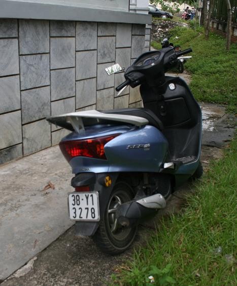 Đại úy cảnh sát Nguyễn Hồng Duẫn với chiếc xe Nouvo mang BKS giả