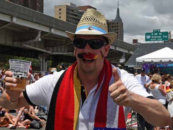 Một cổ động viên mua đồ uống trong trận Mỹ-Đức. (Nguồn: AP)
