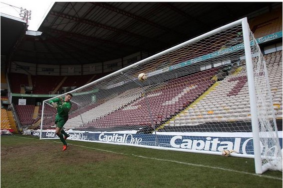 Trong buổi thử nghiệm đầu tiên, thủ thành của Bradford, Matt Duke đã được thử sức. Nhưng dù sở hữu chiều cao tới 1m98, rốt cuộc thủ thành này vẫn bất lực.