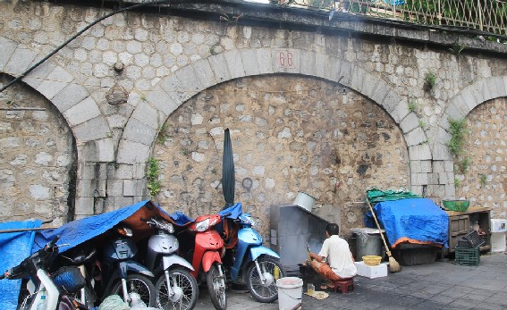 Giờ đây những vòm cầu trở thành bãi gửi xe công cộng hoặc là nơi sinh hoạt của người dân Hà Nội.
