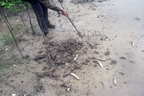 Nhiều người dân đã phát hiện, ai đó đã vớt cá chết lên bờ chôn