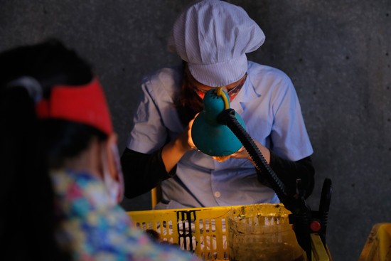 Công việc chỉ quanh quẩn trong một góc nhà với chiếc đèn sợi đốt nho nhỏ. Ngoài ra không cần bất cứ một dụng cụ gì nhưng giúp người nông dân này kiếm tiền tỷ mỗi năm.