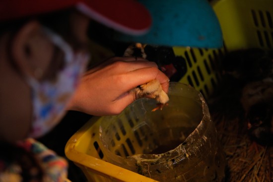 Nơi làm việc của chị Dung lúc nào cũng đặc quánh mùi hôi của phân gà, mùi tanh nồng của gà mới nở
