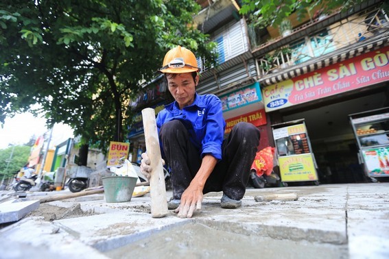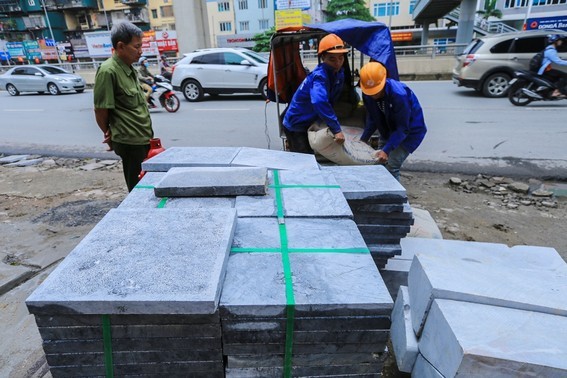 Theo chủ trương của thành phố Hà Nội, việc lát bằng đá tự nhiên có độ bền kết cấu 50-70 năm đang được triển khai tại địa bàn 12 quận trong nội thành để thay thế bằng gạch như trước đây.