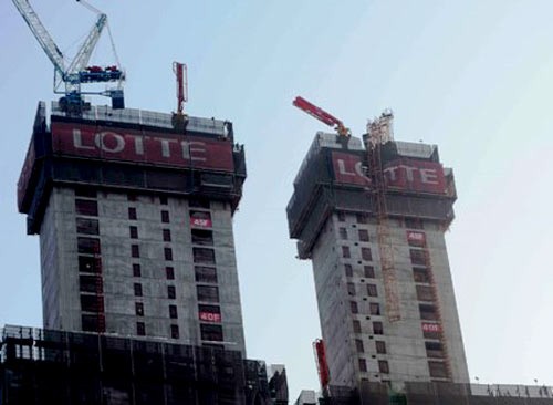 Trung tâm thương mại Hà Nội Lotte Center trên phố Đào Tấn, Liễu Giai, Hà Nội, cao 65 tầng với 5 tầng hầm, cao 267m, hiện đang xây dựng đến tầng 50 (đỉnh chóp). Chủ đầu tư là tập đoàn Lotte Hàn Quốc.