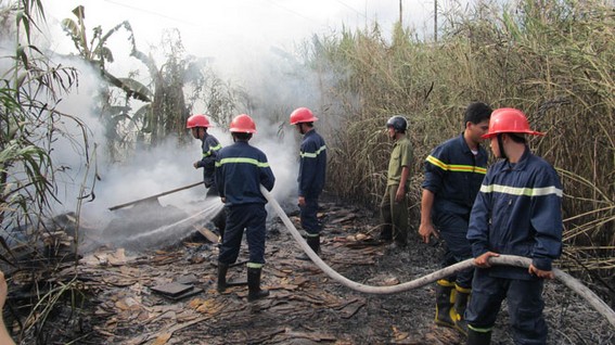 Cảnh sát phòng cháy chữa cháy dập tắt đám cháy - Ảnh: Vĩnh Trà