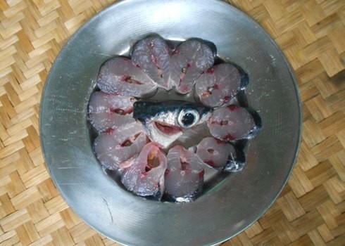 Cá chuồn được làm sạch và thái thành từng lát vừa ăn.