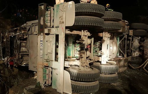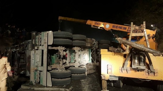 Cơ quan chức năng bước đầu đưa ra giả thiết chiếc xe bồn bị đổ nghiêng do chất lỏng dồn về 1 phía trong quá trình đổ dốc.