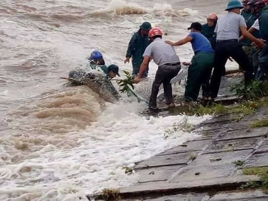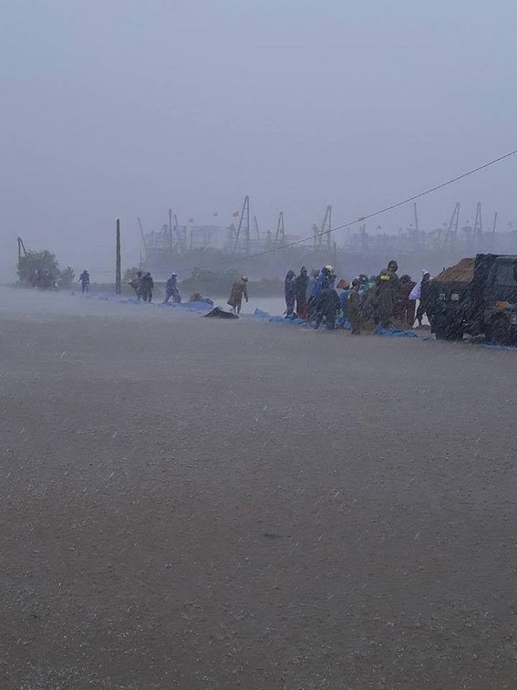 ''Do sóng to, triều cường tăng nên nước biển dâng cao so với mặt đê khoảng 60-70cm. Hiện tại, chúng tôi đã cử cán bộ xuống trực tiếp chỉ đạo, huy động các lực lượng khắc phục''.
