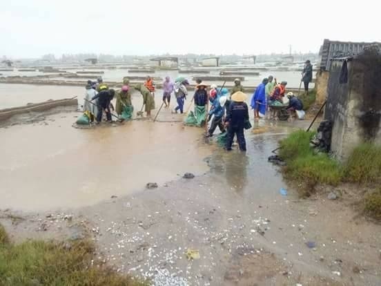 Người dân phải cùng nhau đắp đập tránh nước biển tràn vào
