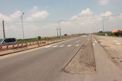 Đường tránh TP Vĩnh Yên đầu tư 600 tỷ khánh thành năm 2010 đã phải sửa nhăm nhút vì lún. Ảnh: Công Tâm