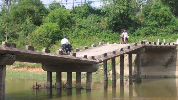 Người dân cho hay trong tháng 9-2012, một học sinh rơi xuống sông khi đạp xe đi học qua đoạn cầu gãy này do xe bị trượt bánh, nhiều em khác bị ngã xe bầm tím cả người...