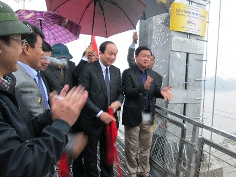Cơn mưa như trút nước sáng nay không ngăn được những người dân, các cơ quan truyền thông báo chí, đại diện các ban ngành Trung ương, địa phương về dự Lễ khánh thành và gắn biển công trình cầu treo Nam Công do Bộ GTVT tổ chức. Đây được xem là sự kiện có ý nghĩa dân sinh lớn lao tại thôn Nam Công, xã Thanh Tân, huyện Thanh Liêm, tỉnh Hà Nam trong những ngày cuối năm này. Đặc biệt, cầu treo Nam Công là cây cầu lớn nhất và đầu tiên được xây dựng từ quỹ “Nhịp cầu yêu thương” của 130 nhà tài trợ, với tổng giá trị lên tới hơn 400 tỷ đồng. Bộ trưởng Bộ GTVT Đinh La Thăng đã đến dự và phát lệnh thông xe.