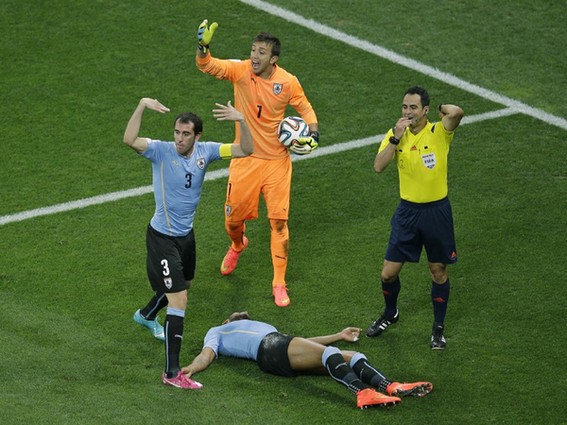 Alvaro Pereira của Uruguay đã nằm bất tỉnh ngay trên sân sau khi lĩnh trọn đầu gối của Raheem Sterling trong trận "sinh tử" giữa Uruguay và Anh trong khuôn khổ bảng D World Cup 2014 diễn ra rạng sáng nay.