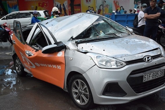 Theo anh Tiến, xe ô tô trên được anh sử dụng làm loại hình kinh doanh chạy Uber. Hôm nay đang chở khách đến tòa nhà trên đường Tôn Đức Thắng thị bị nạn.