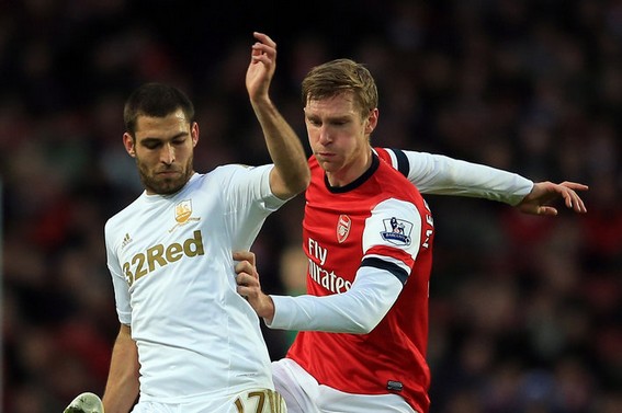 Một trận đấu tồi từ phía trung vệ Per Metesacker khiến Arsenal không thể giành chiến thắng trước Swansea trong trận đấu tại vòng 3 cúp FA.
