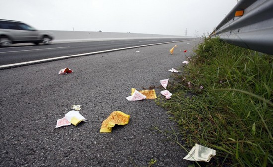 Tình trạng rải vàng mã trên cao tốc. (Ảnh minh hoạ)
