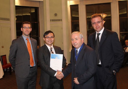 Hoàng Đông Bách chụp cùng Chủ tịch ICS trong lần nhận giải thưởng tại