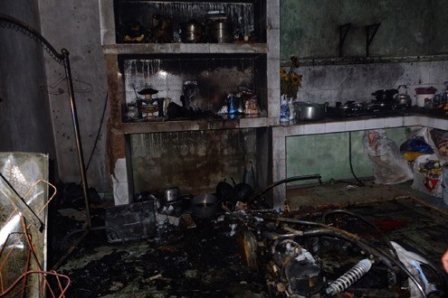 Theo những người tham gia cứu hỏa, nguyên nhân vụ cháy có thể là do sự cố chập điện từ tủ lạnh, rồi ngọn lửa bén sang chiếc xe tay ga dựng gần đó.