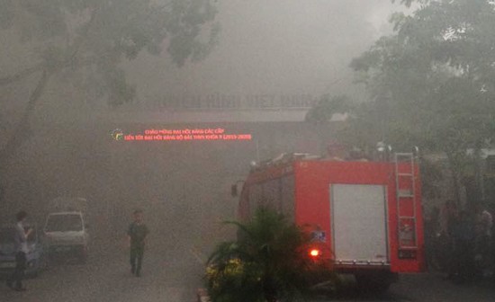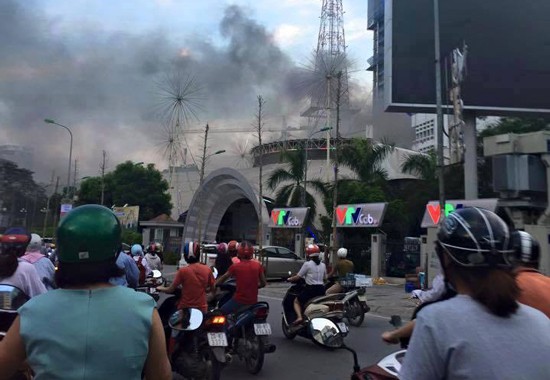 Ngọn lửa lớn kèm theo khói trắng bao trùm khu vực Đài truyền hình Việt Nam khiến nhiều người hốt hoảng