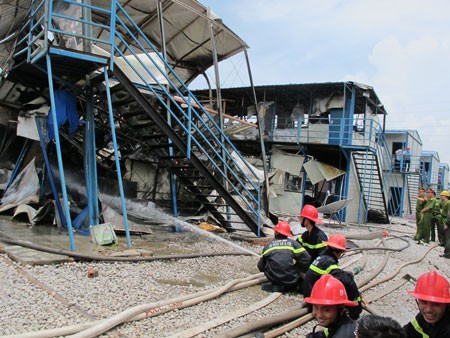 Vụ cháy xảy ra khoảng 10h sáng 14.8, tại khu tập thể công nhân Trung Quốc thi công cho nhà máy Nhiệt điện II Hải Phòng (xã Tam Hưng, huyện thủy Nguyên, Hải Phòng).