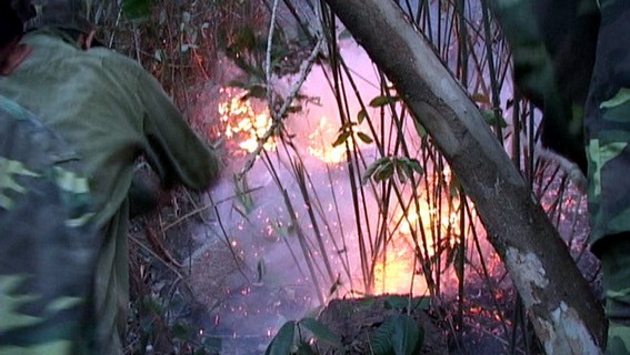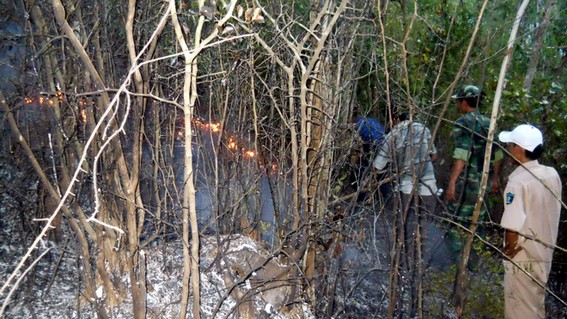 Trước đó, trưa 6-8, cũng tại khu vực trên đã xảy ra cháy rừng, hơn 10ha rừng, chủ yếu bạch đàn 6-7 năm tuổi bị lửa thiêu rụi.