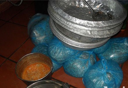 Thời điểm lực lượng chức năng ập vào, 3 công nhân làm việc tại đây đang chế biến 70 kg thịt lợn xay sẵn thành mắm tép chưng thịt thành phẩm. Chủ cơ sở đã xuất trình một số giấy tờ như Giấy đăng ký kinh doanh, Giấy chứng nhận cơ sở đủ điều kiện VSATTP, Công bố tiêu chuẩn cho sản phẩm, các giấy tờ thuê đất ngoài bãi có đề án xây dựng môi trường được chính quyền địa phương xác nhận...