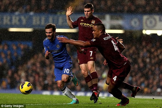 Trước khí thế tấn công hừng hực của đội chủ nhà, Man City buộc phải triển khai lối đá phòng ngự phản công. Phút 59, Yaya Toure thực hiện pha nã “đại bác tầm xa” khiến Petr Cech phải mất hai nhịp mới có thể bắt gọn bóng trong tay. Ít phút sau, Hazard phối hợp ăn ý với Mata rồi nhả bóng lại cho Torres tung ra cú sút đi vọt xà.