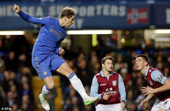 Chelsea đã nhập cuộc rất tưng bừng và nhanh chóng tạo ra thế trận tấn công áp đảo. Không cần phải đợi lâu, ngay từ phút thứ 3, họ đã có bàn mở tỷ số để sưởi ấm bầu không khí lạnh giá. Azpilicueta (28-Chelsea) thực hiện pha tạt bóng từ bên cánh trái vào trong vòng cấm cho Torres (9) bật cao đánh đầu hạ gục thủ môn Aston Villa.