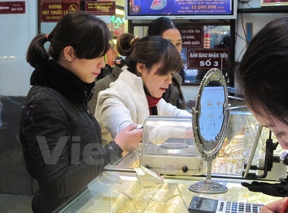Khách hàng đang giao dịch vàng miếng (Ảnh: Đức Duy/Vietnam+))