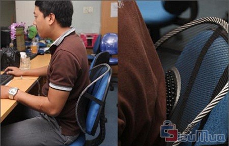 Theo lời quảng cáo của chị Mai Vân (người rao bán tấm tựa lưng masage "thần kỳ" tại nhà ở phố Đội Cấn, Hà Nội), một trong những nguyên nhân gây các chứng đau nhức đó là do chúng ta ngồi không đúng tư thế, gây ra hiện tượng lệch cột sống, căng áp lên các nhóm cơ, làm hạn chế lưu thông tuần hoàn máu và dẫn đến những cơn đau nhức thắt lưng, cột sống. Vì thế, khi sử dụng tấm lưới tựa lưng sẽ bảo vệ cột sống, cải thiện dáng ngồi, nâng đỡ cột sống sẽ không còn cảm giác đau lưng. Giá một sản phẩm chỉ với 50.000 đồng, giảm 50% so với trước đây.