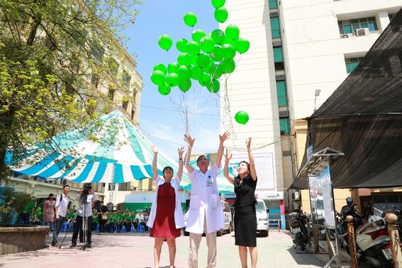 PGS.TS Lưu Thị Hồng – Nguyên Vụ trưởng Vụ sức khỏe bà mẹ và trẻ em, Bộ Y tế, Tổng Thư ký Hội Sản Phụ Khoa Việt Nam; PGS.TS Vũ Bá Quyết – Giám đốc Bệnh Viện Phụ Sản TW – Phó chủ tịch thường trực Hội Phụ sản Việt Nam và Bà Dương Thị Sáu – TGĐ Công ty TNHH Ích Nhân thực hiện nghi thức thả bỏng bay, qua đó thể hiện quyết tâm truyền thông, vận động chị em phụ nữ quan tâm đúng mức đến nội tiết tố nữ, từ đó nâng cao chất lượng cuộc sống.