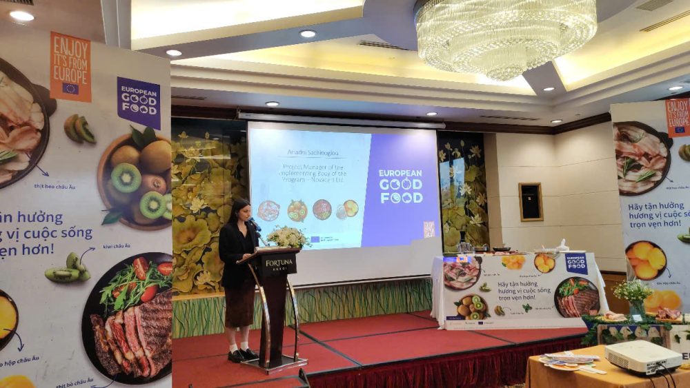 Tại sự kiện ra mắt chiến dịch vào ngày 17/3/2025 tại Hà Nội, bà Ariadni Sachinoglou – Quản lý Dự án của Công ty Novacert – khẳng định thực phẩm châu Âu nổi tiếng toàn cầu nhờ tính an toàn, khả năng truy xuất nguồn gốc và độ xác thực cao. Bà Ariadni Sachinoglou cho biết Liên minh châu Âu đã áp dụng hệ thống kiểm soát chặt chẽ, có thể giám sát ở mọi giai đoạn sản xuất để đảm bảo chất lượng và an toàn thực phẩm. Những tiêu chuẩn này bao gồm điều kiện sản xuất, vệ sinh, kiểm soát phòng thí nghiệm và giám sát nguy cơ tiềm ẩn.