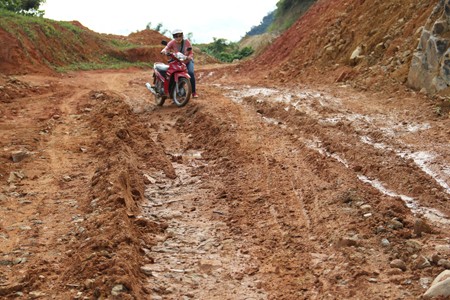Đã trễ 7 tháng nhưng đường Trà Phong-Gò Rô-Trà Bung vẫn chưa hoàn thành.