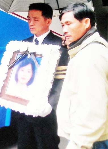 Người chồng Hàn Quốc ôm di ảnh vợ.