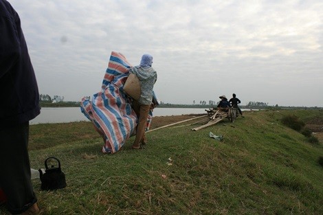 Người dân vẫn tiếp tục mang bạt ra đê dựng lều canh cát tặc