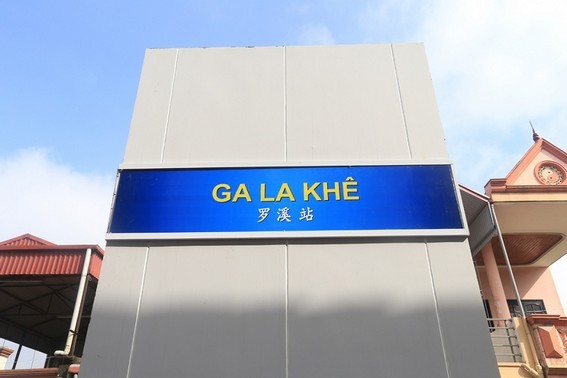 Ga La Khê được viết bằng song ngữ Việt - Trung.
