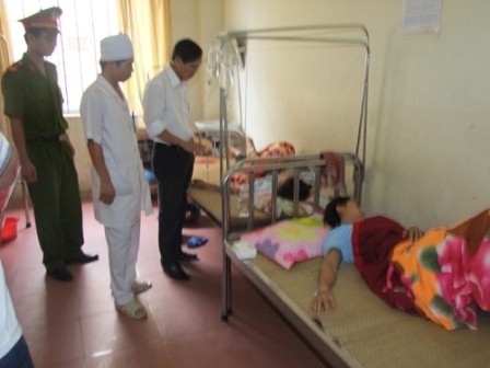 Lãnh đạo huyện Thiệu Hóa đến thăm các bệnh nhân bị ngộ độc thực phẩm.