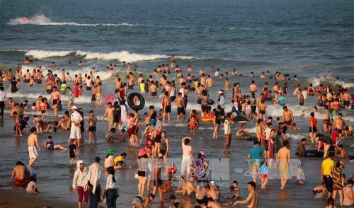 Bãi biển Sầm Sơn thu hút đông đảo du khách trong dịp hè. Ảnh: Thanh Tùng/TTXVN
