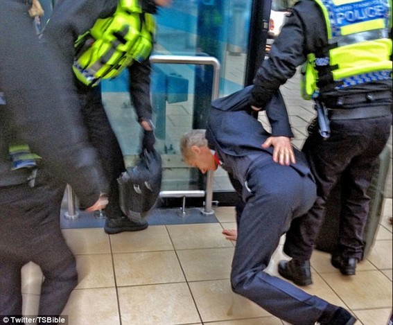 Ông chỉ có thể đứng dậy nhờ sự giúp sức của cảnh sát.