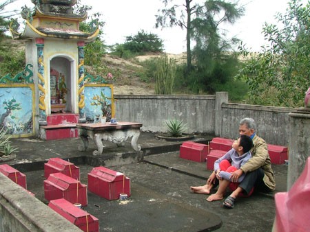 12 nấm mồ những đứa con không may mắn của bà Nức chỉ là những ụ đất nhỏ. Năm 2007, được bạn bè giúp đỡ, ông bà xây những nấm mồ này thành cái lăng nhỏ cho đỡ bị cát vùi. Vì có đứa mới sinh ra 2 - 3 ngày đã chết nên các nấm mồ không có tên mà chỉ gắn số thứ tự từ 1 - 12. Mỗi lần thắp nhang cho các con, ký ức ùa về, lòng quặn thắt, bà Nức lại òa khóc nức nở. Mỗi năm, dù có khó khăn đến mấy, 2 vợ chồng bà đều làm 12 mâm cơm với hương hoa, áo vải đốt cho con, mong các con được đầy đủ dưới suối vàng.