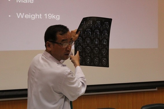“Qua thăm khám, bác sĩ phát hiện có hai bướu, một bướu máu nằm bên ngoài da, vùng võng mạc, một bướu lớn nằm trong não của bệnh nhân. Vì thế, khi mổ chúng tôi đã xem xét rất nhiều về cách điều trị, sự hướng dẫn của giáo sư”, bác sĩ Hiệp cho hay.